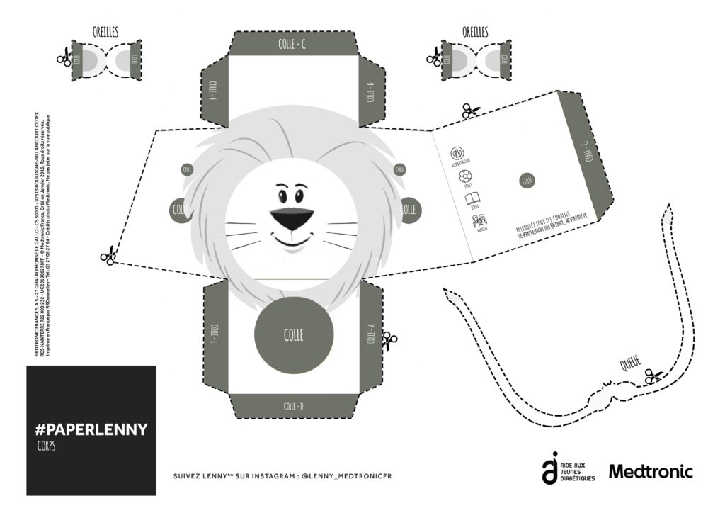 Dans un premier temps, rendez-vous donc sur https://www.parlonsdiabete.com/lenny pour suivre les étapes de fabrication du Paper Lenny (un papertoy est un jouet en papier à colorier et à assembler)